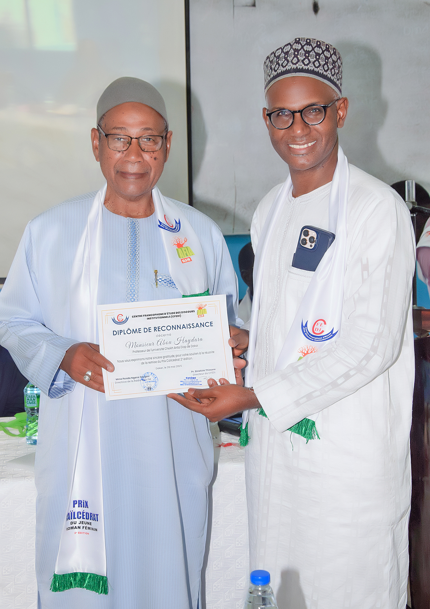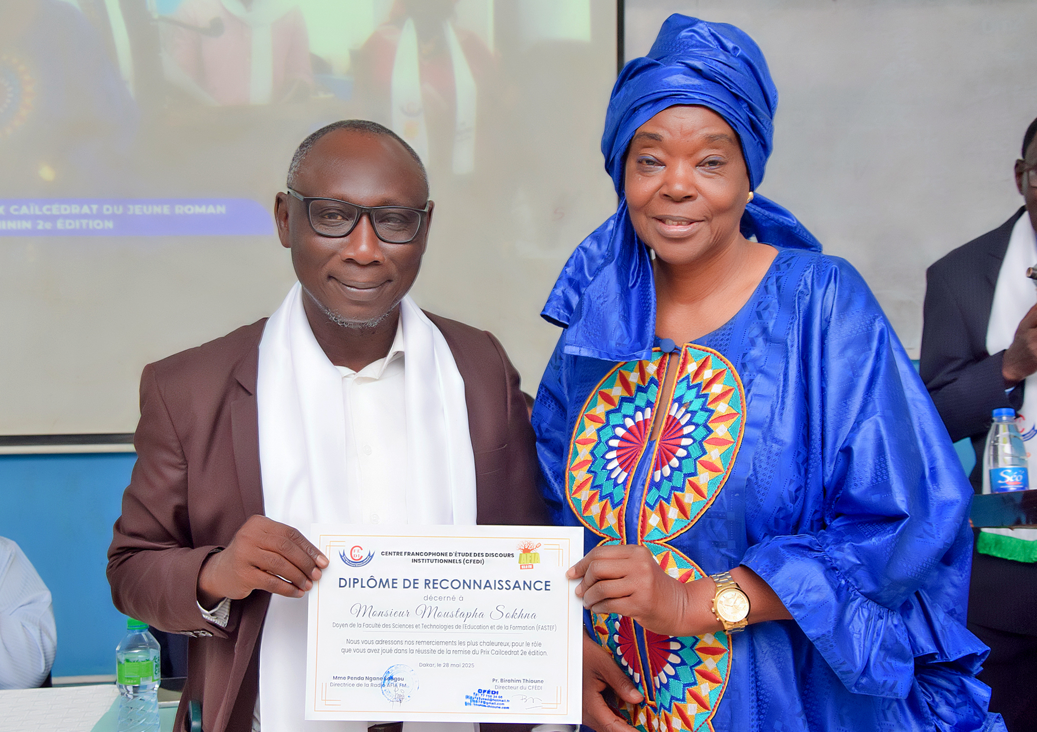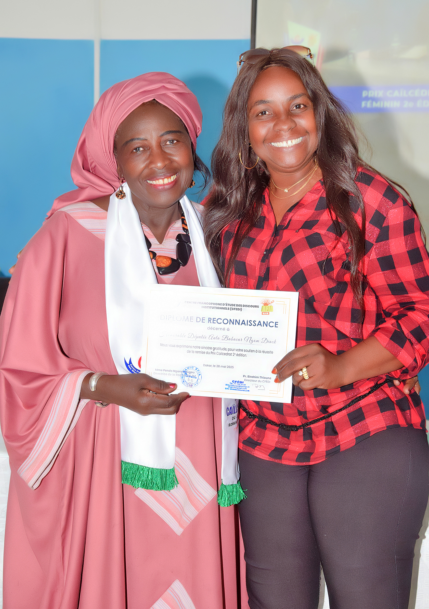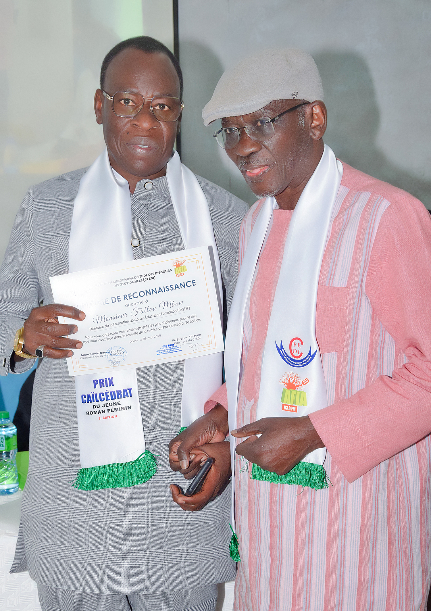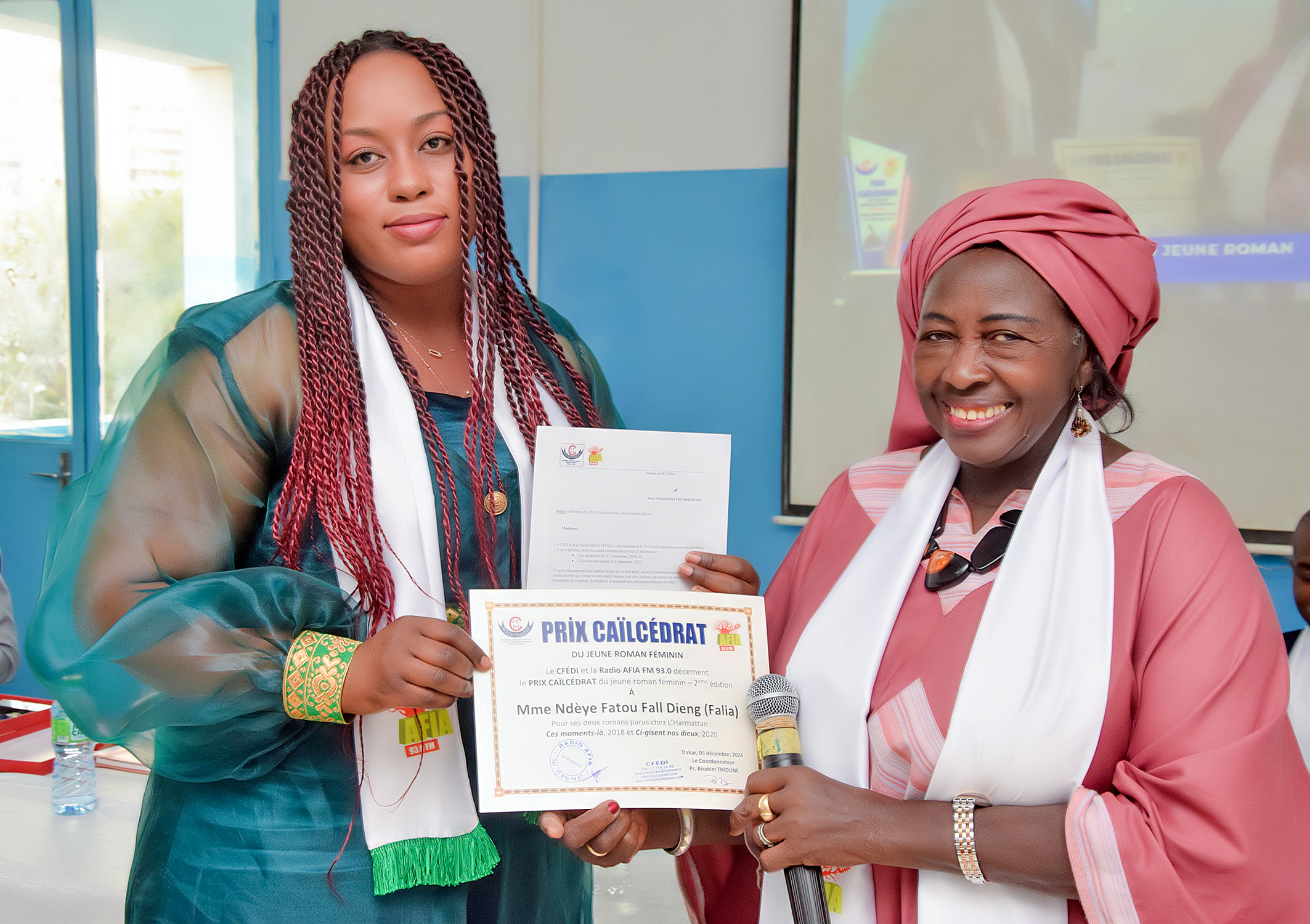 Nous allons donner tout à l'heure les attributs du Prix CAILCEDRAT à Mme Ndèye Fatou Fall Dieng, connue également sous le pseudonyme Falia.